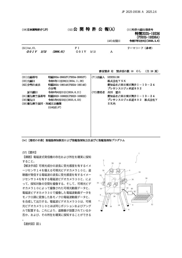 特許販売1(盗聴器の発見に関する特許)
